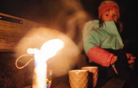 Samen met een gids wandel je met fakkels door sfeervolle winterpaden. Een magische avondervaring voor families en kinderen.