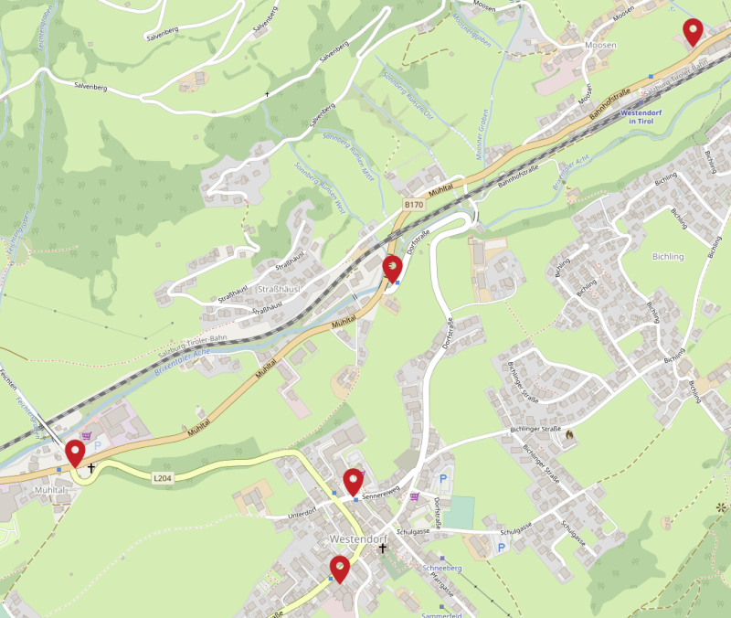 Wil je op de snelste manier naar het Skigebied Skiwelt? Pak dan de skibus. Deze is gratis voor toeristen die in het bezit zijn van een skipas van Skiwelt. Alle opstapplaatsen van de skibus in Westendorf vind je op de afbeelding hiernaast.